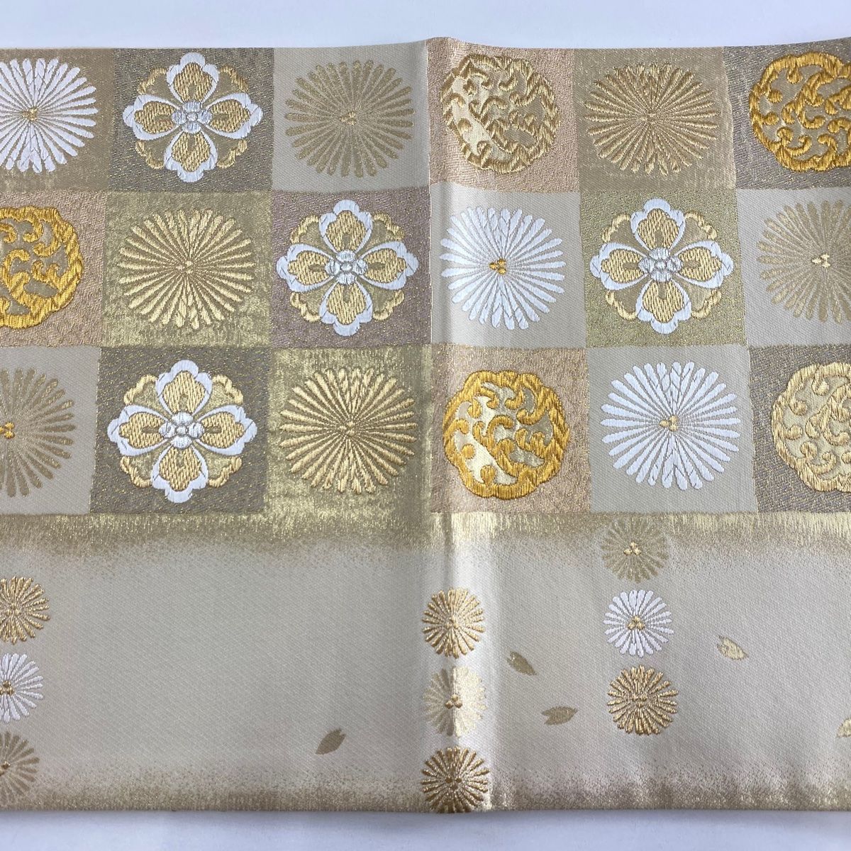 袋名古屋帯 秀品 市松 菊 箔 金銀糸 クリーム 正絹 WWW_GLOBALQUALITYIMPORTS_COM