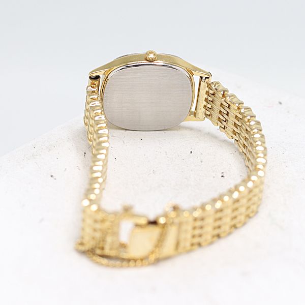 ELYSEE Watch quartz Ladies White G Silver Stone Square Working Y2K エリゼ 時計 クオーツ 白文字盤 ゴールド シルバー レディース ストーン スクエア 稼働品