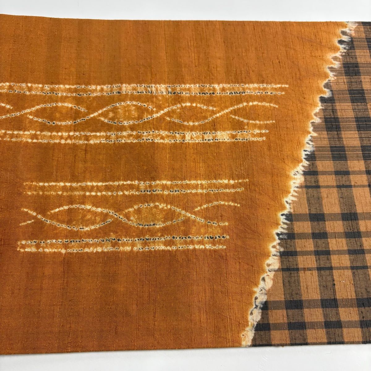開き名古屋帯 秀品 紬地 鳥 幾何学模様 絞り 茶色 正絹 WWW_GLOBALQUALITYIMPORTS_COM