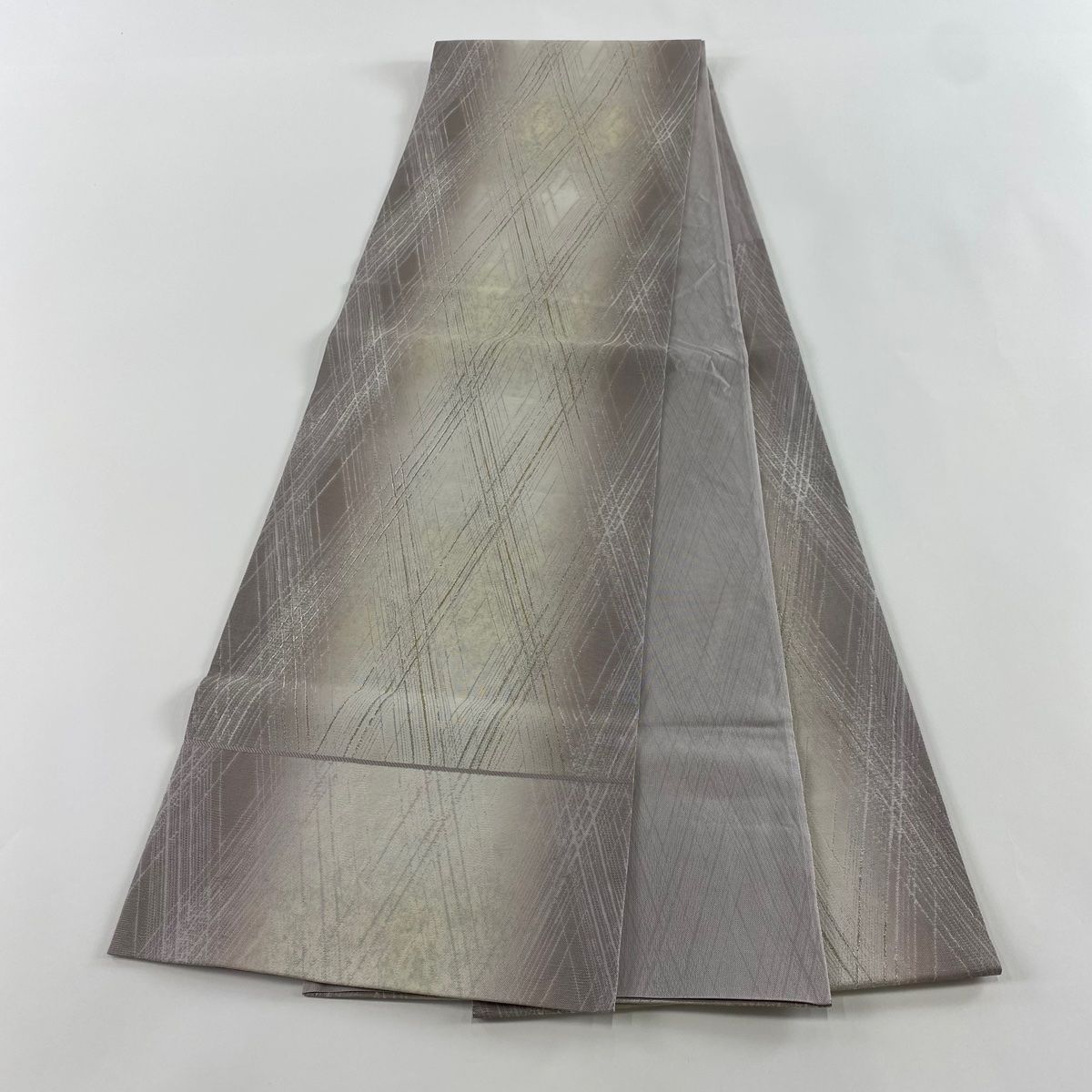 袋帯 加納幸 落款 菱 斜め格子 金銀糸 ぼかし 灰紫 六通 正絹 WWW_GLOBALQUALITYIMPORTS_COM