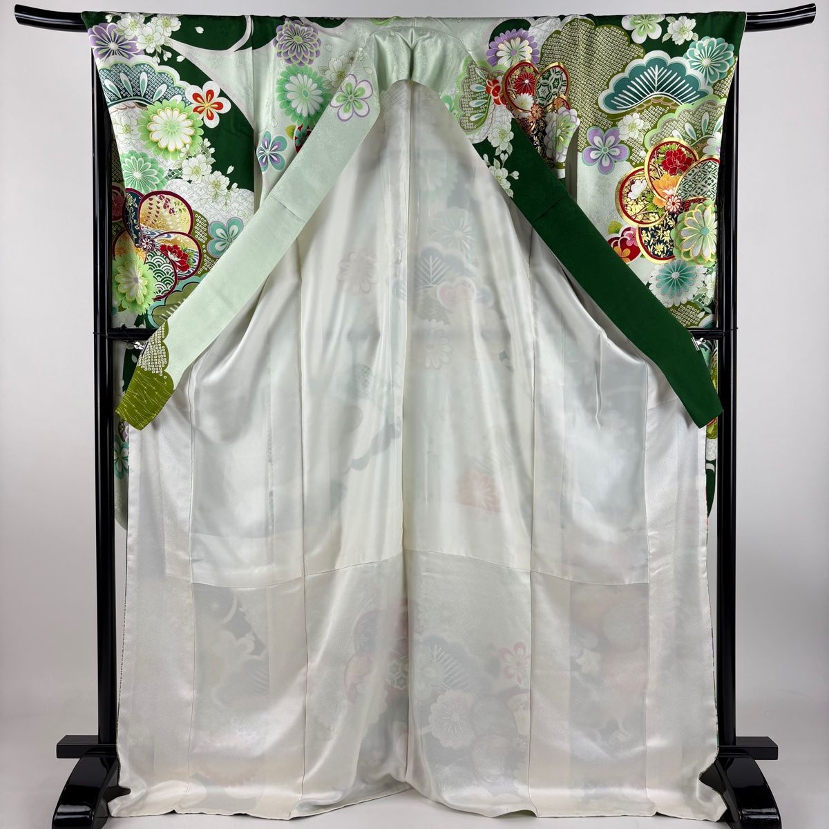 振袖 身丈175cm 裄丈69cm L 袷 ねじ梅 菊 金銀糸 金彩 深緑 正絹の検索結果