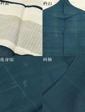 平和屋着物 夏物 色無地 絽 横段紋紗 藍色 正絹 AABA5792sx WWW_GLOBALQUALITYIMPORTS_COM