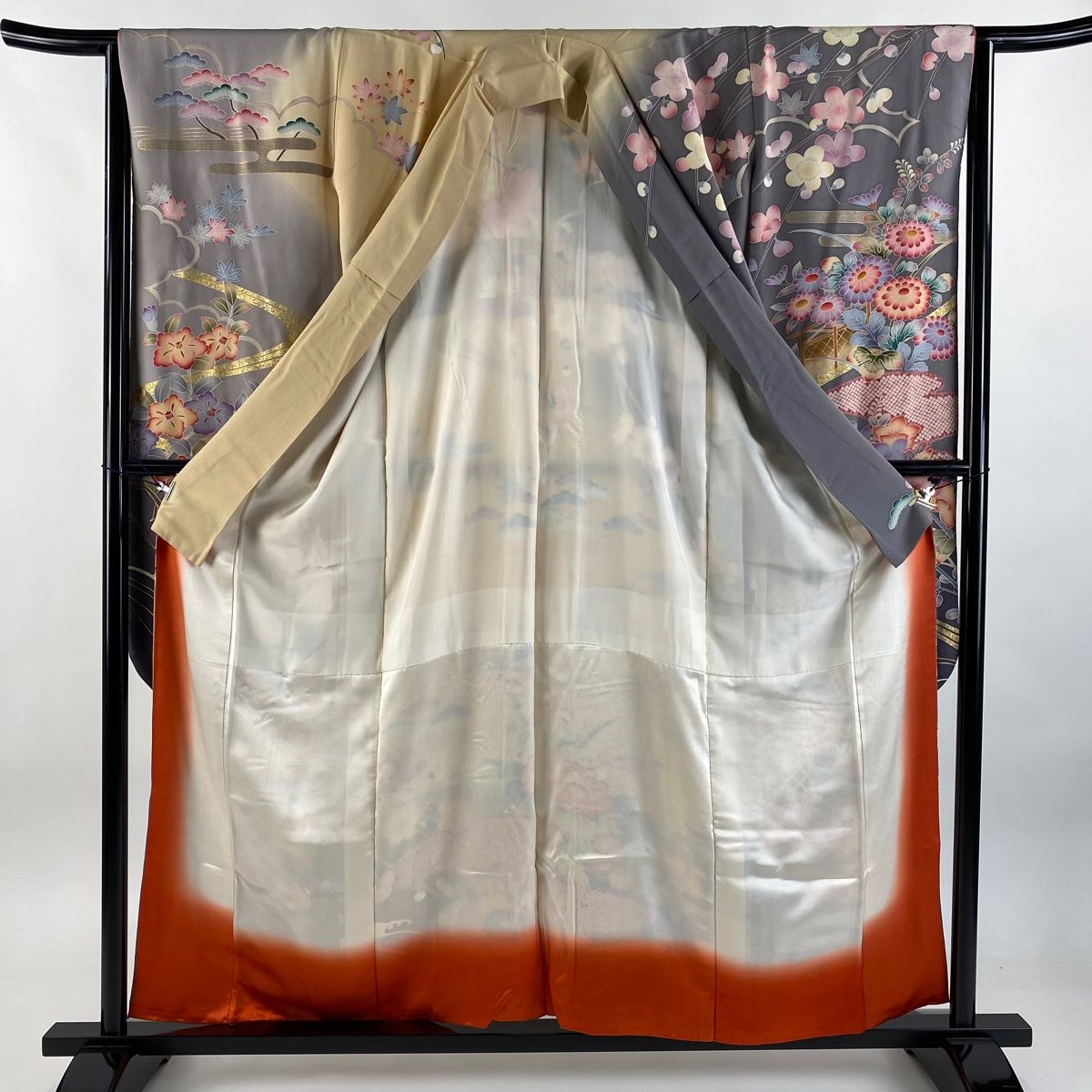 振袖 身丈157.5cm 裄丈65cm M 袷 草花 流水 金彩 染め分け 灰紫 正絹 秀品の検索結果