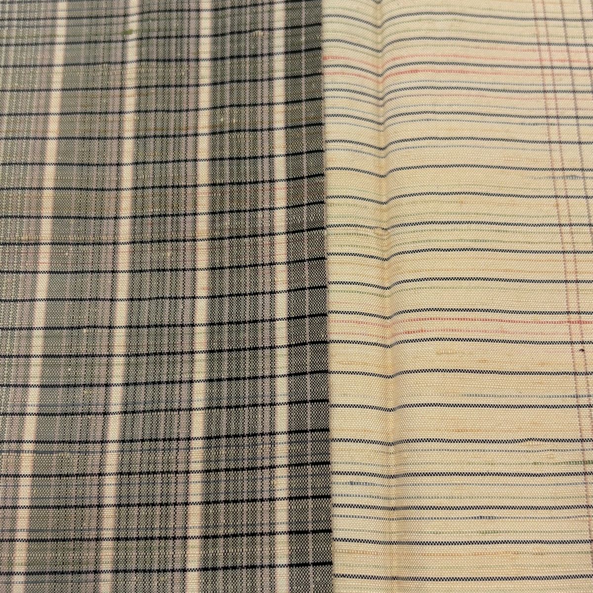 紬 身丈157cm 裄丈65.5cm M 単衣 やまと 格子 薄茶色 正絹 秀品の検索結果