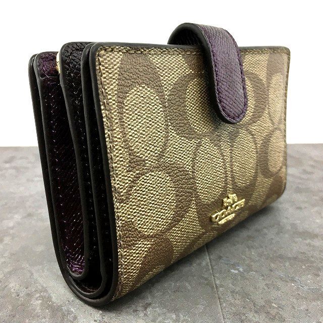 220 み COACH ミディアムウォレット F23553 シグネチャー ベージュ パープルの検索結果