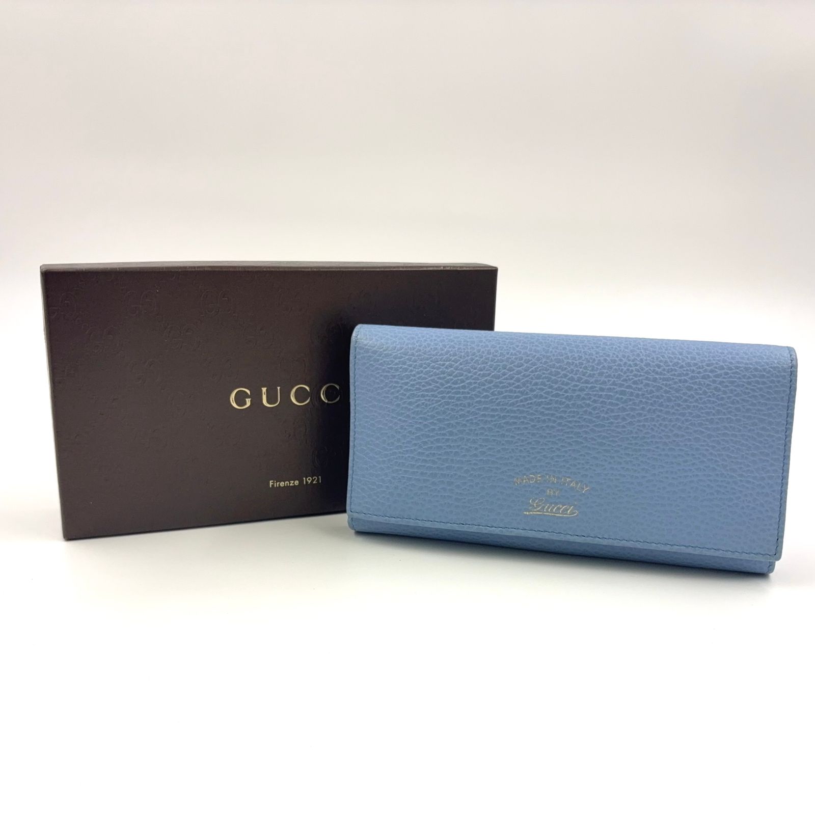 GUCCI スウィング コンチネンタル レザー ライトブルー 長財布 ゴールドの検索結果