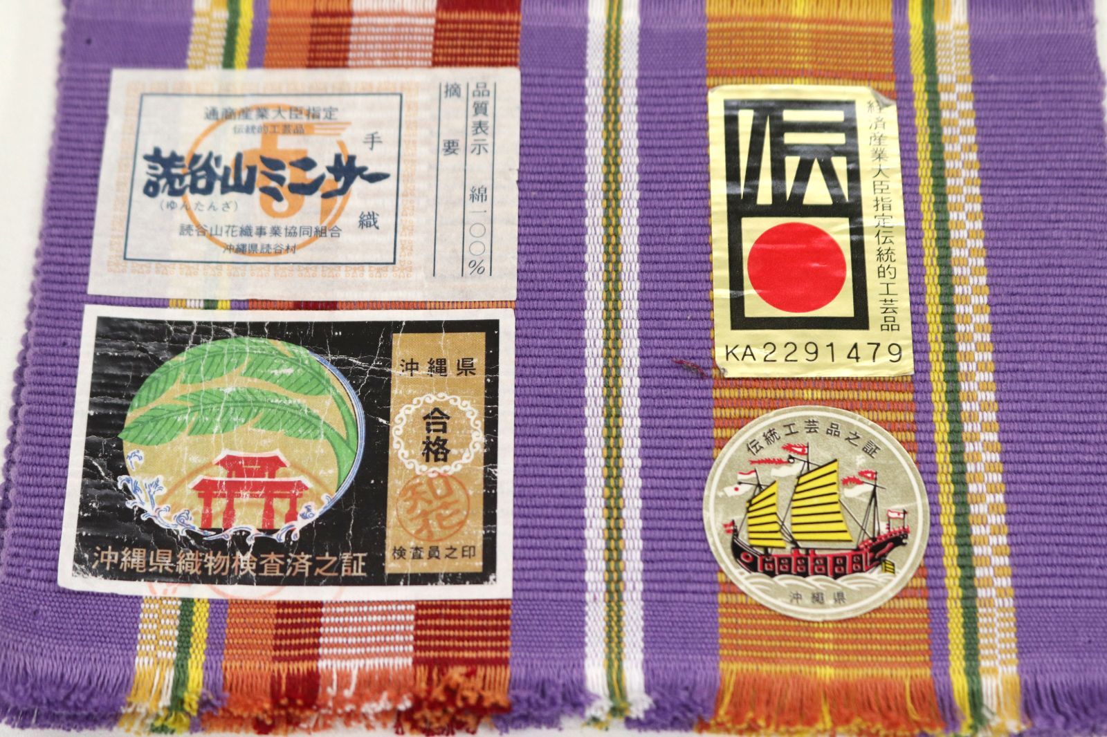 oha064 沖縄県 読谷山 ゆんたんざ ミンサー 手織 四寸帯 半幅帯 綿100%の検索結果