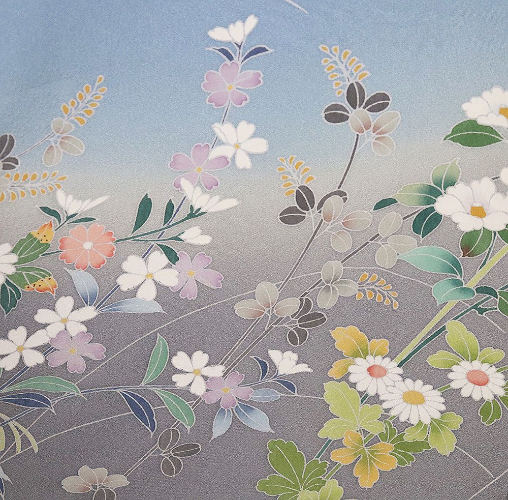訪問着 袷 正絹 水色 薄緑 グレー紫 菊 ススキ 椿 撫子 SSサイズ ki31148 レディース シルク フォーマル 30代 40代 50代 み WWW_GLOBALQUALITYIMPORTS_COM