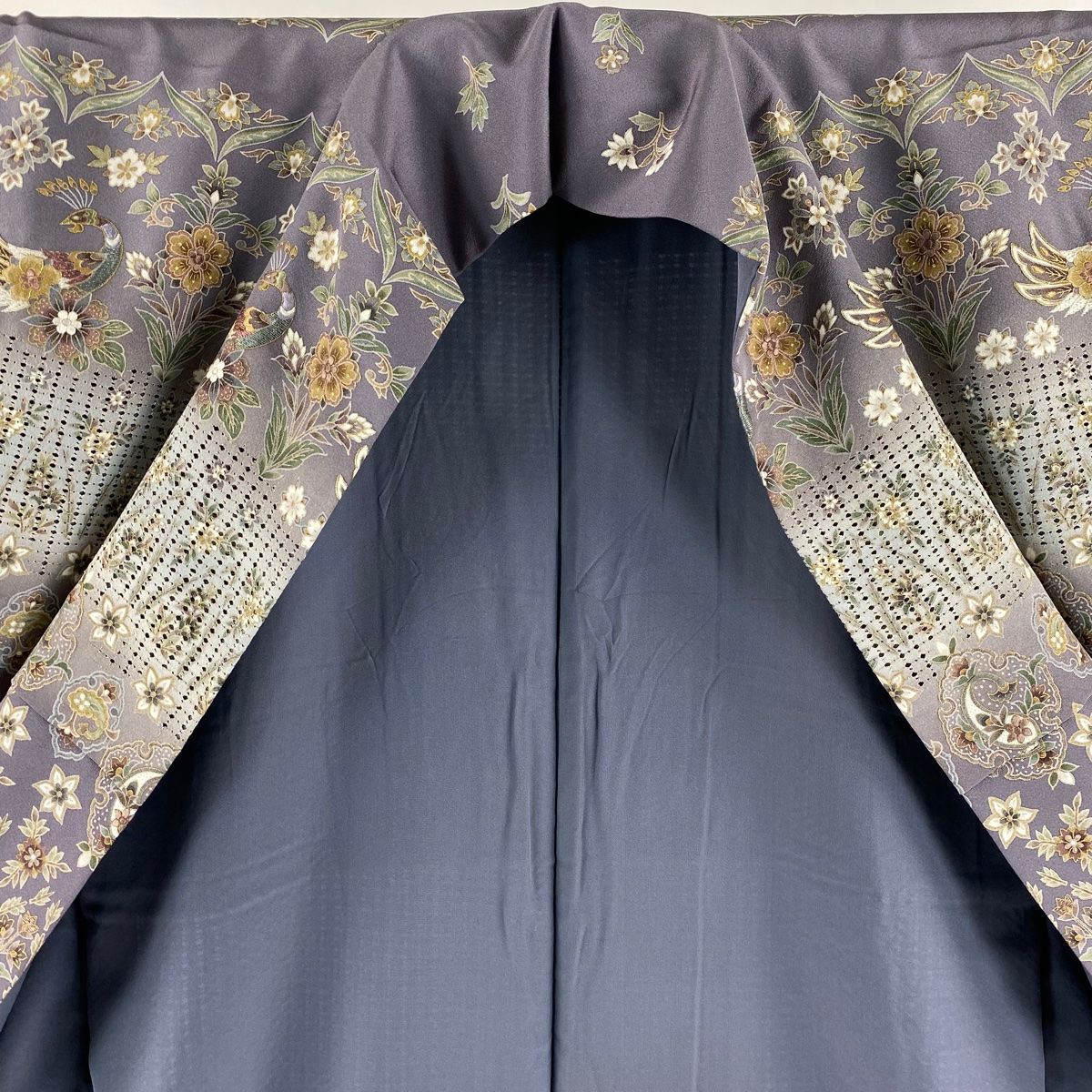 訪問着 身丈163cm 裄丈66cm M 袷 孔雀 草花 刺繍 金糸 灰紫 正絹の検索結果