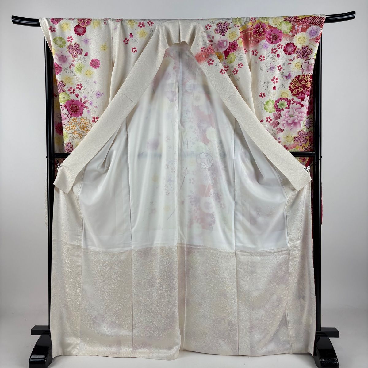 振袖 身丈170.5cm 裄丈69.5cm L 袷 牡丹 桜 刺繍 銀通し クリーム 正絹の検索結果