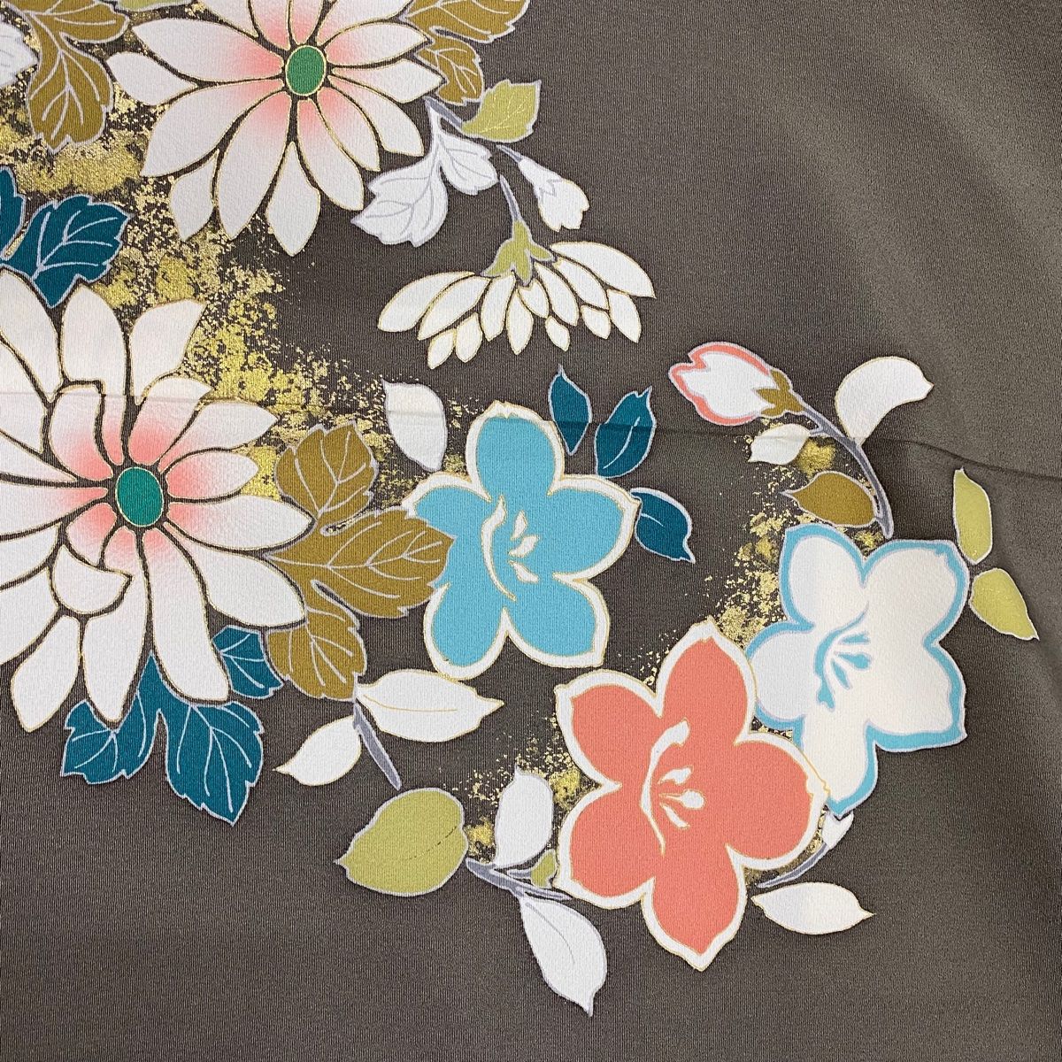 訪問着 身丈171.5cm 裄丈68cm L 袷 花丸文 菊 金彩 茶緑色 正絹 秀品の検索結果