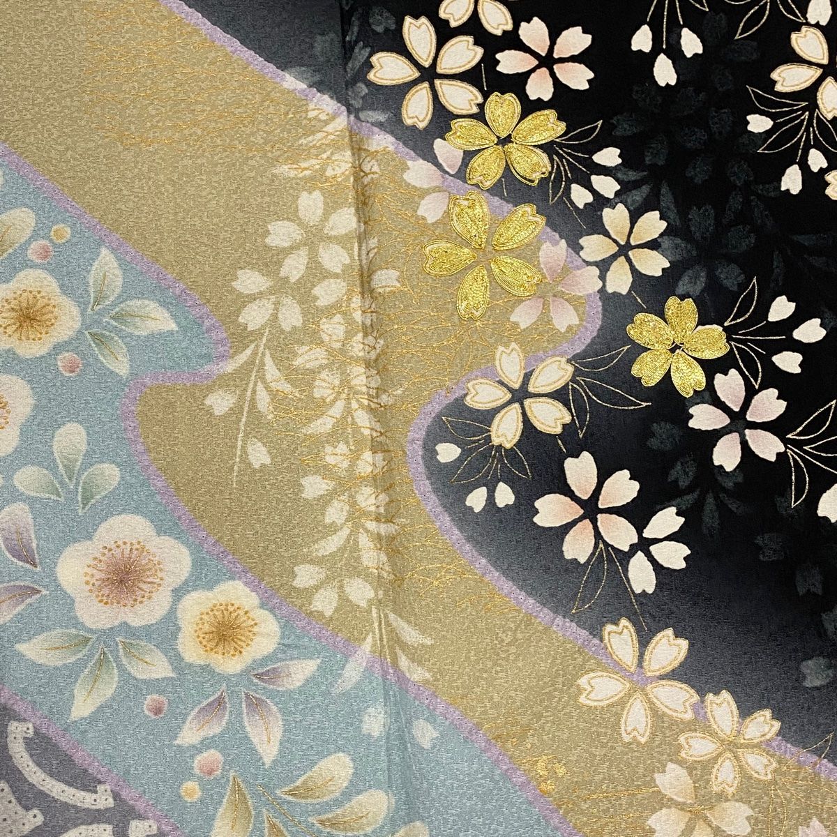 訪問着 身丈168.5cm 裄丈69.5cm L 袷 桜 草花 絞り 金糸 黒 正絹の検索結果