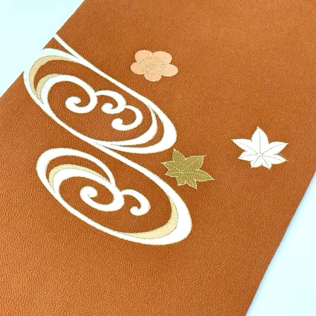 名古屋帯 桜の花模様 蕾 縮緬 梅谷渋色 長尺 O-5552
