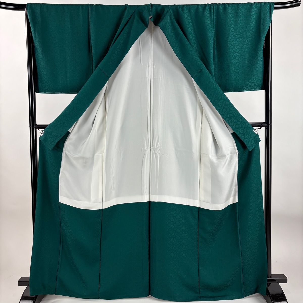 色無地 身丈166cm 裄丈67cm M 袷 地紋 緑 正絹 秀品 WWW_GLOBALQUALITYIMPORTS_COM