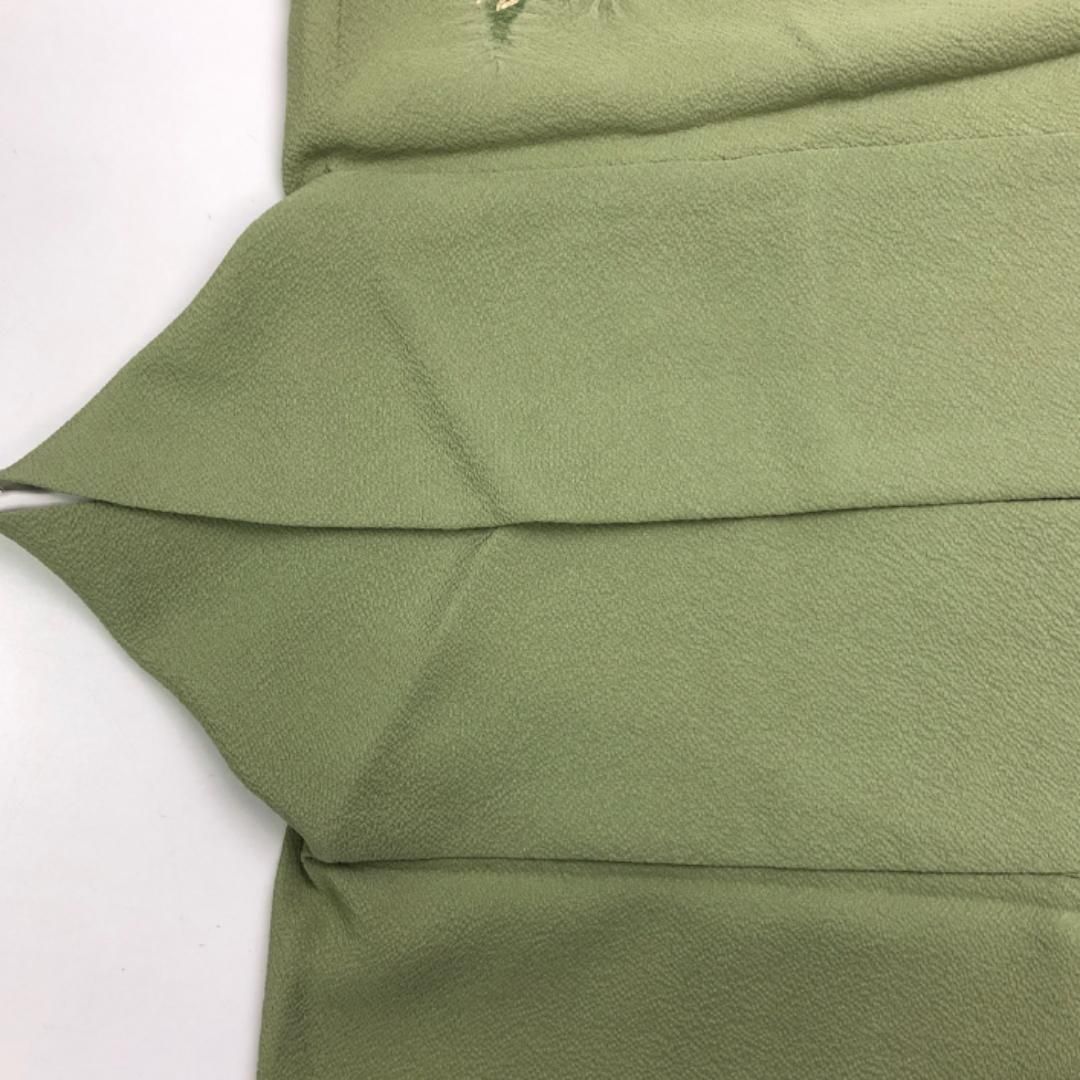 訪問着 身丈156.5cm 裄丈65cm M 袷 草花 葉柄 刺繍 金糸 灰色 正絹 秀品 一つ紋