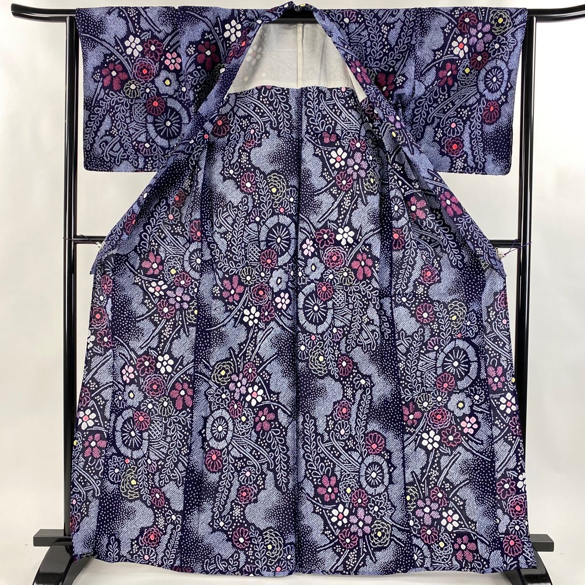 浴衣 身丈166cm 裄丈63.5cm S 絞り浴衣 源氏車 草花 紺色 綿 WWW_GLOBALQUALITYIMPORTS_COM