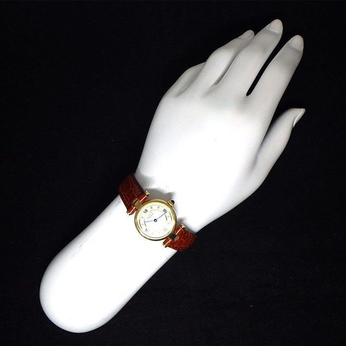 カルティエ Cartier 腕時計 マストヴァンドーム SM 590004 アイボリー文字盤 ローマンインデックス ブラウン カーフレザーベルト GP SV925 クオーツアナログ WWW_GLOBALQUALITYIMPORTS_COM