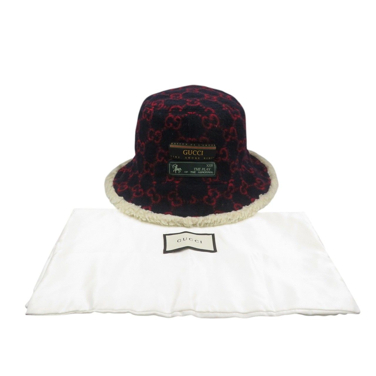 グッチ 604194 L 59cm ウール ネイビー レッド バケットハット 帽子 1524 GUCCIの検索結果