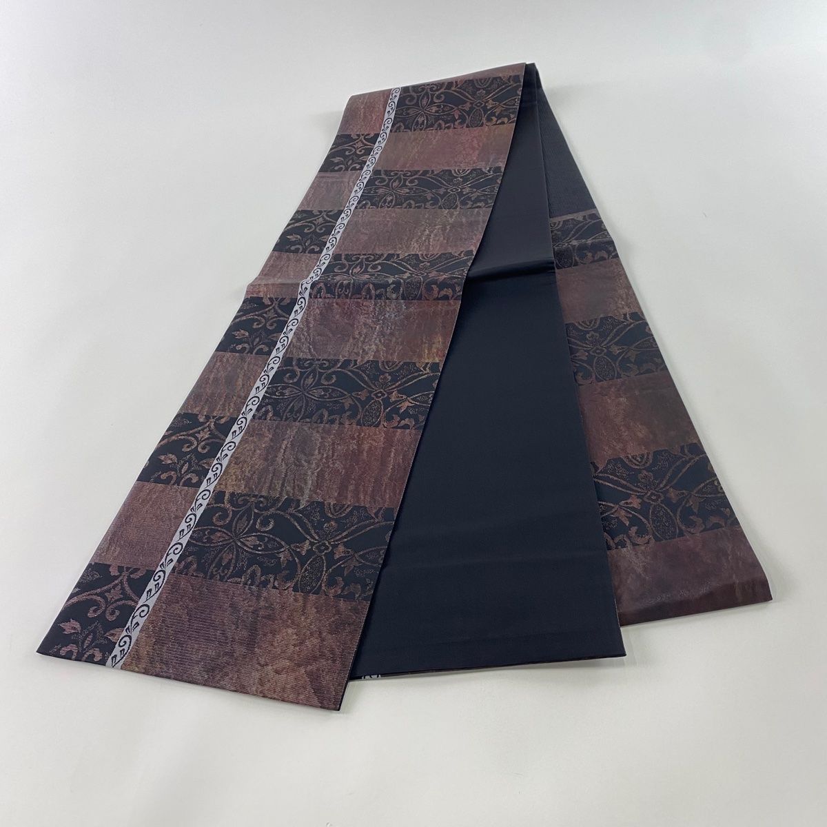 袋帯 秀品 横段 幾何学 箔 茶紫 六通 正絹 WWW_GLOBALQUALITYIMPORTS_COM