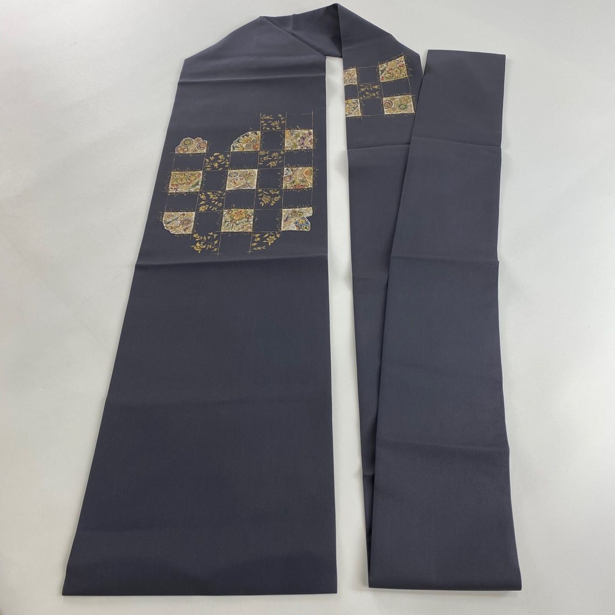 名古屋帯 秀品 草花 格子 金彩 黒灰 正絹の検索結果