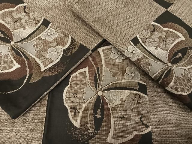 大島紬 身丈166cm 裄丈68cm L 袷 純泥染 証紙 幾何学 草花 焦茶色 正絹