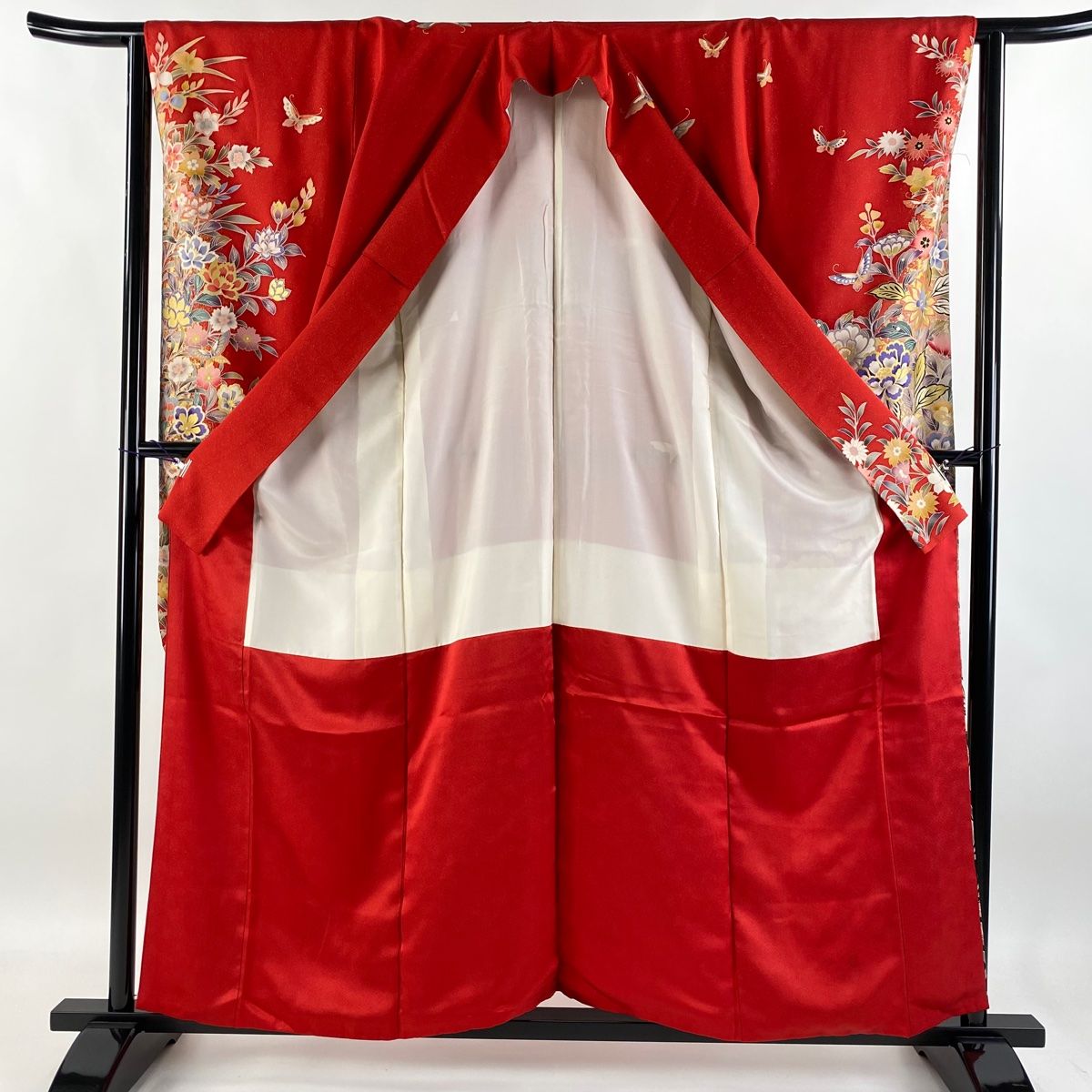 振袖 身丈157.5cm 裄丈62.5cm S 袷 草花 蝶 金糸 銀通し 赤 正絹の検索結果