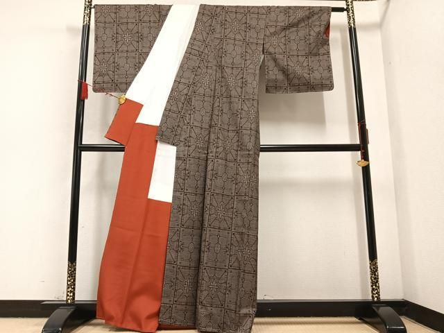 平和屋着物 本塩沢 110亀甲 変わり格子文 正絹 DAAW5607ud