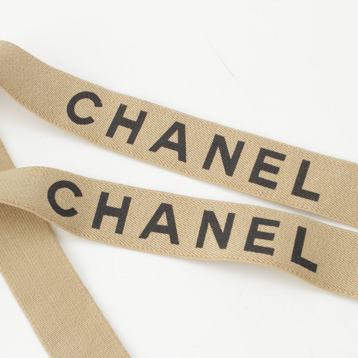 シャネル 1994 S S キャンバス レザー テープロゴ サスペンダー ベージュ ブラック