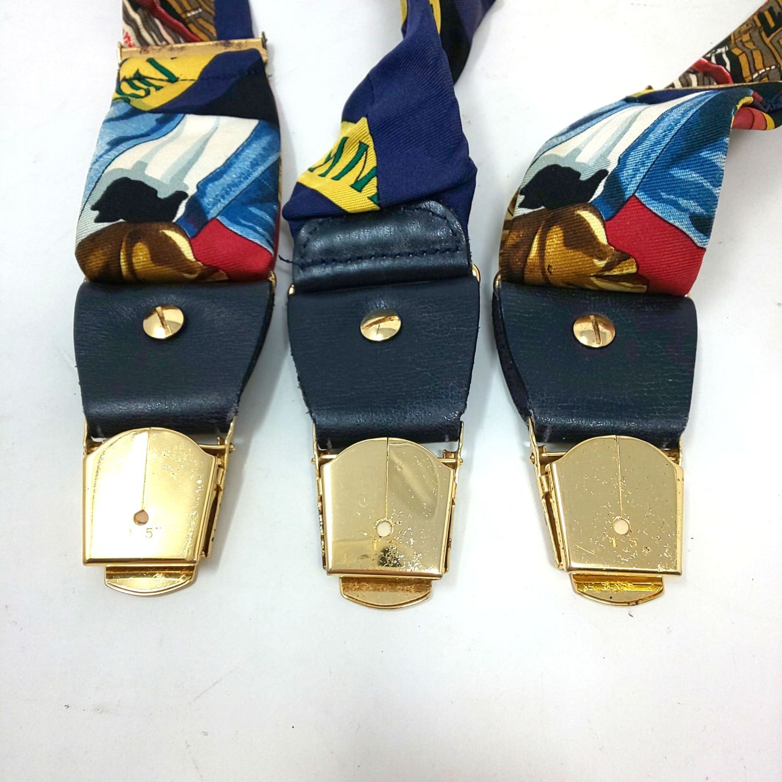 971D-05 HERMES エルメス シルク サスペンダー レザー 総柄 ゴールド金具 ブランド 服飾雑貨 WWW_GLOBALQUALITYIMPORTS_COM