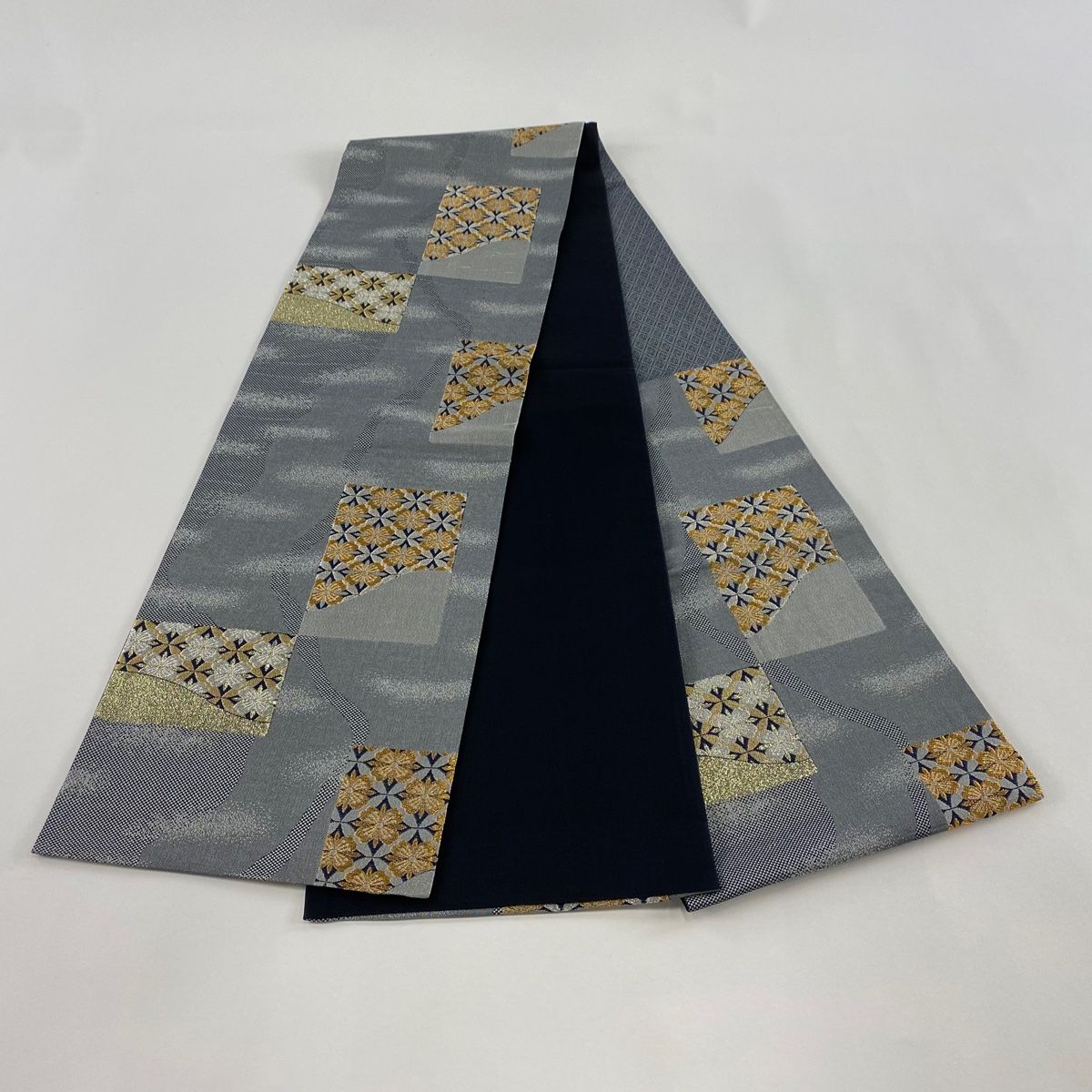 袋帯 秀品 七宝 花 箔 金銀糸 灰色 六通 正絹 WWW_GLOBALQUALITYIMPORTS_COM