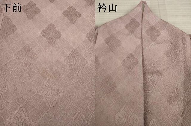 色無地 身丈153cm 裄丈62cm S 袷 百貫 落款 地紋 ピンクベージュ 正絹 秀品 一つ紋