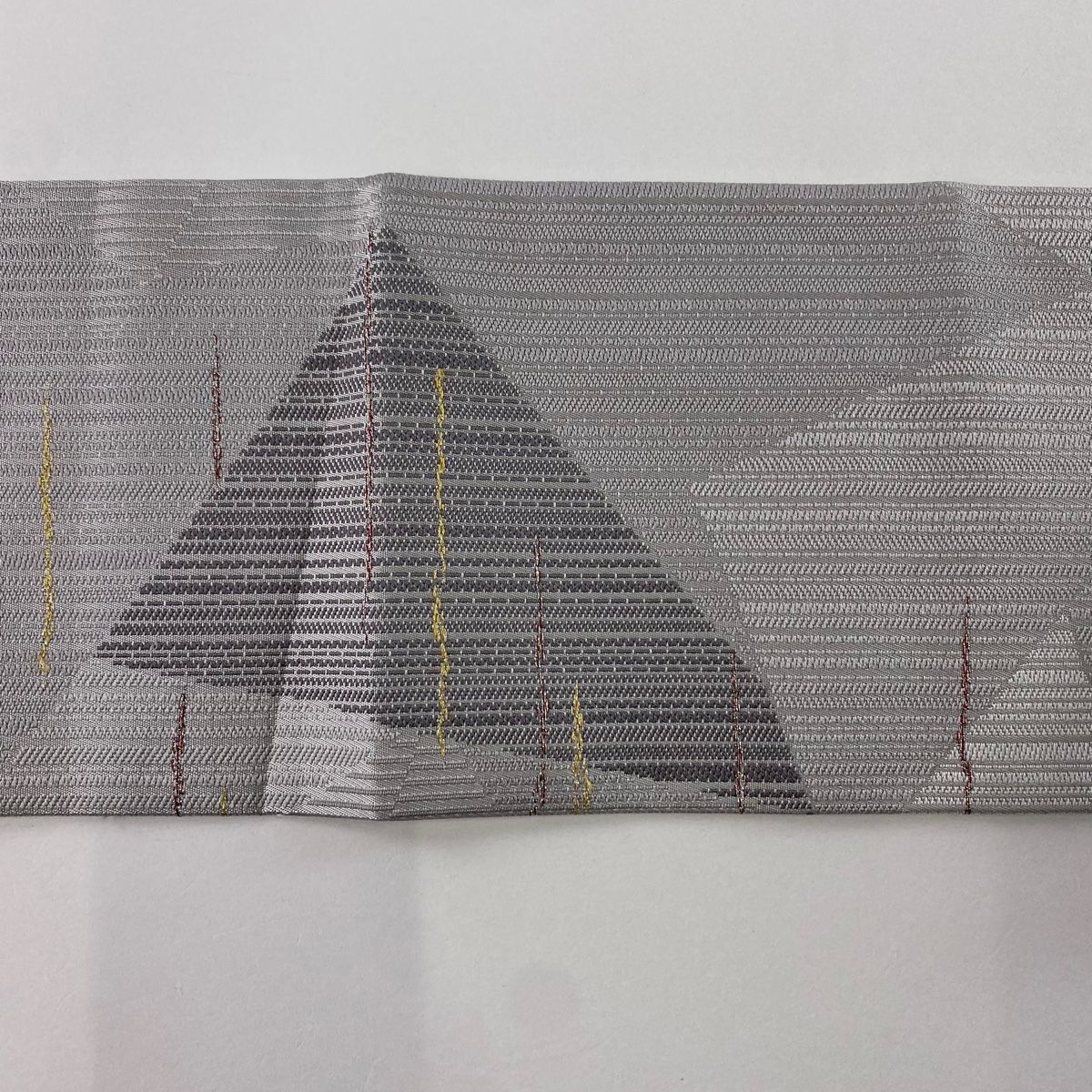 名古屋帯 秀品 縞 寄せ柄 箔 灰紫 正絹 WWW_GLOBALQUALITYIMPORTS_COM