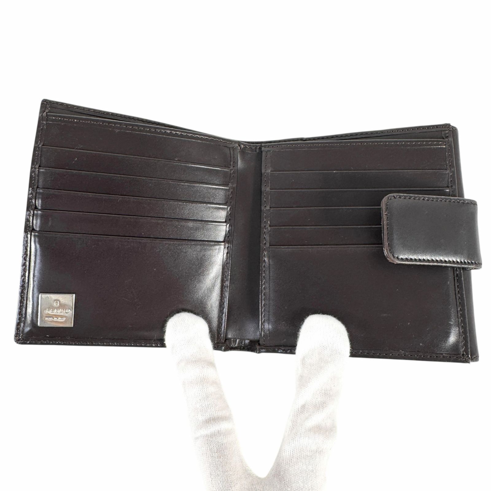 FENDI フェンディ 2つ折り財布 ズッカ柄 ブラウン×黒×ダークブラウン レザー