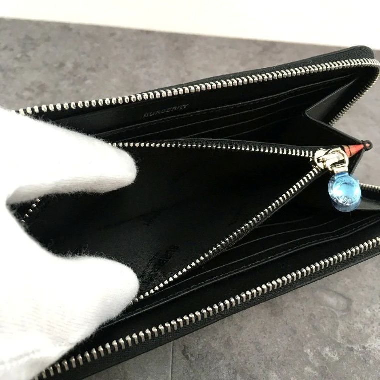Burberry バーバリー 三つ折り財布 8049280 コンパクト ウォレット ブラック 黒 レザー Sランク