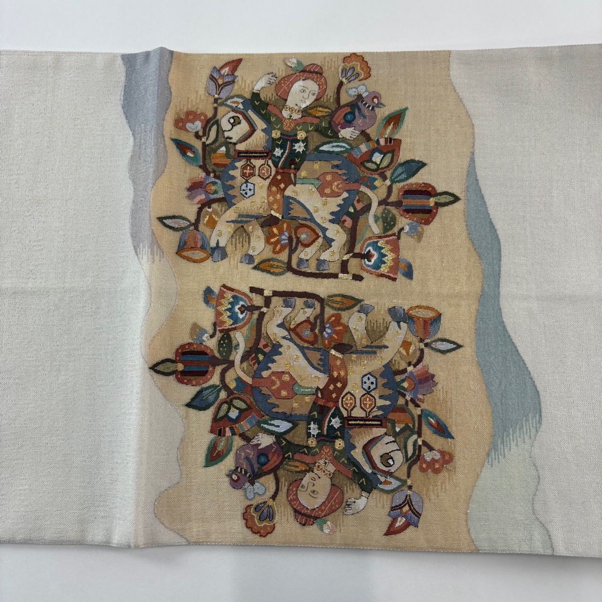 袋帯 人物 動物 金糸 ベージュ お太鼓柄 正絹 WWW_GLOBALQUALITYIMPORTS_COM