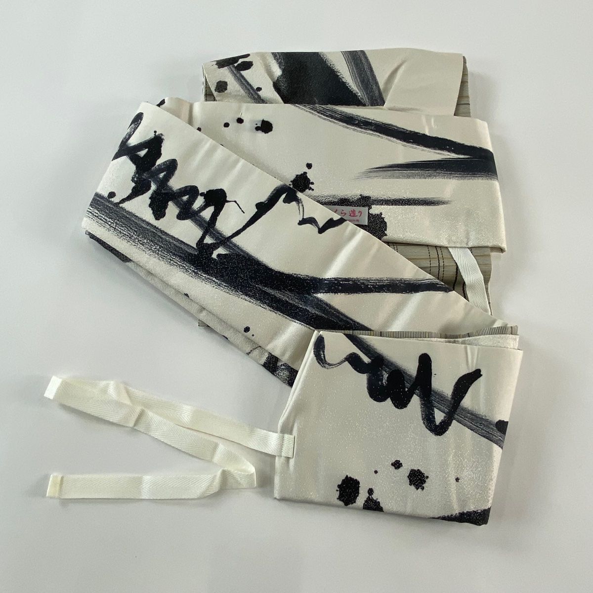 付け帯 秀品 作り帯 幾何学 銀糸 クリーム 正絹 WWW_GLOBALQUALITYIMPORTS_COM