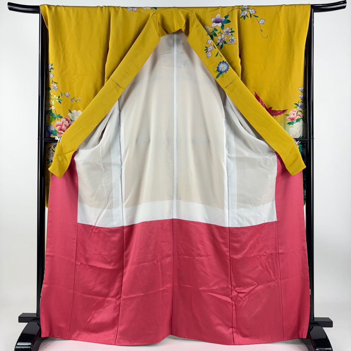 振袖 身丈167.5cm 裄丈66.5cm M 袷 草花 鳥 金彩 ぼかし からし色 正絹の検索結果