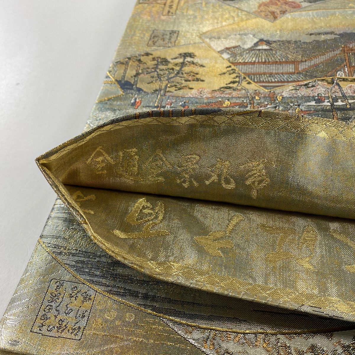 丸帯 名所大江戸百景 扇面 人物 箔 金色 全通 正絹 WWW_GLOBALQUALITYIMPORTS_COM