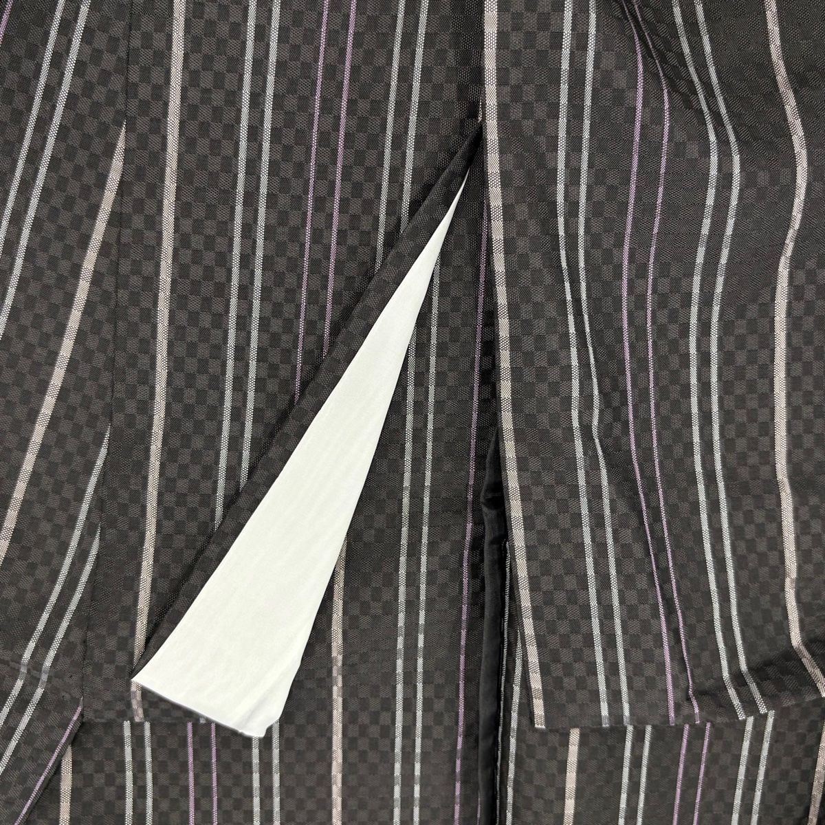 紬 身丈161cm 裄丈67cm M 単衣 縦縞 墨色 正絹の検索結果