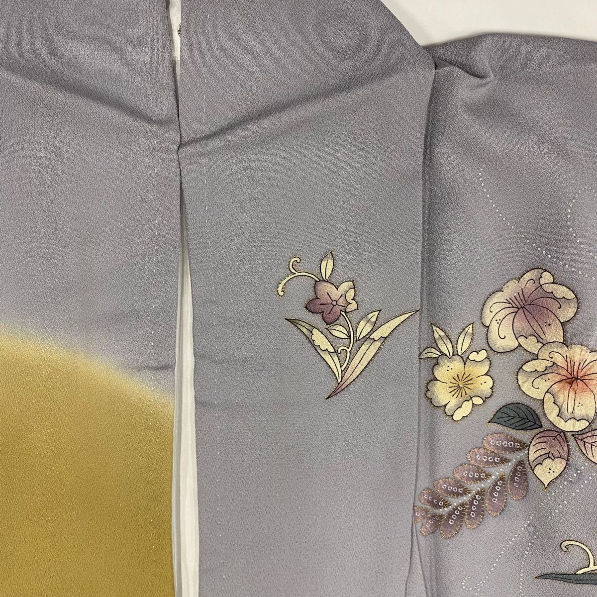 訪問着 身丈168.5cm 裄丈66cm M 袷 雪輪 秋草 金糸 金彩 灰緑 正絹