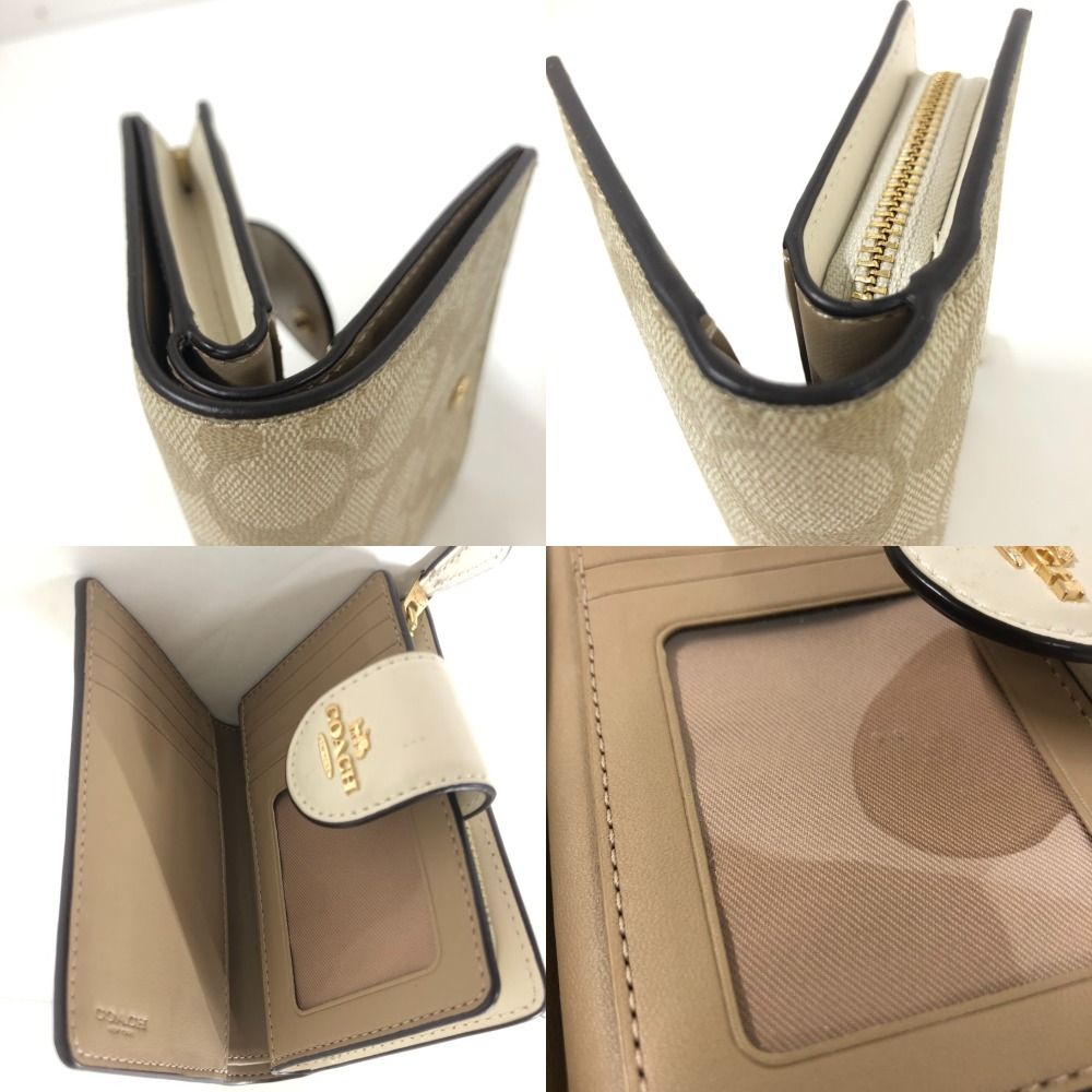 08w13843 コーチ COACH ミディアム コーナー ジップ ウォレット シグネチャー キャンバス ベージュ ホワイト 二つ折り財布 品 WWW_GLOBALQUALITYIMPORTS_COM