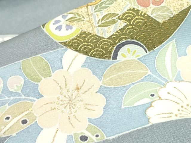 訪問着 身丈168.5cm 裄丈66cm M 袷 雪輪 秋草 金糸 金彩 灰緑 正絹