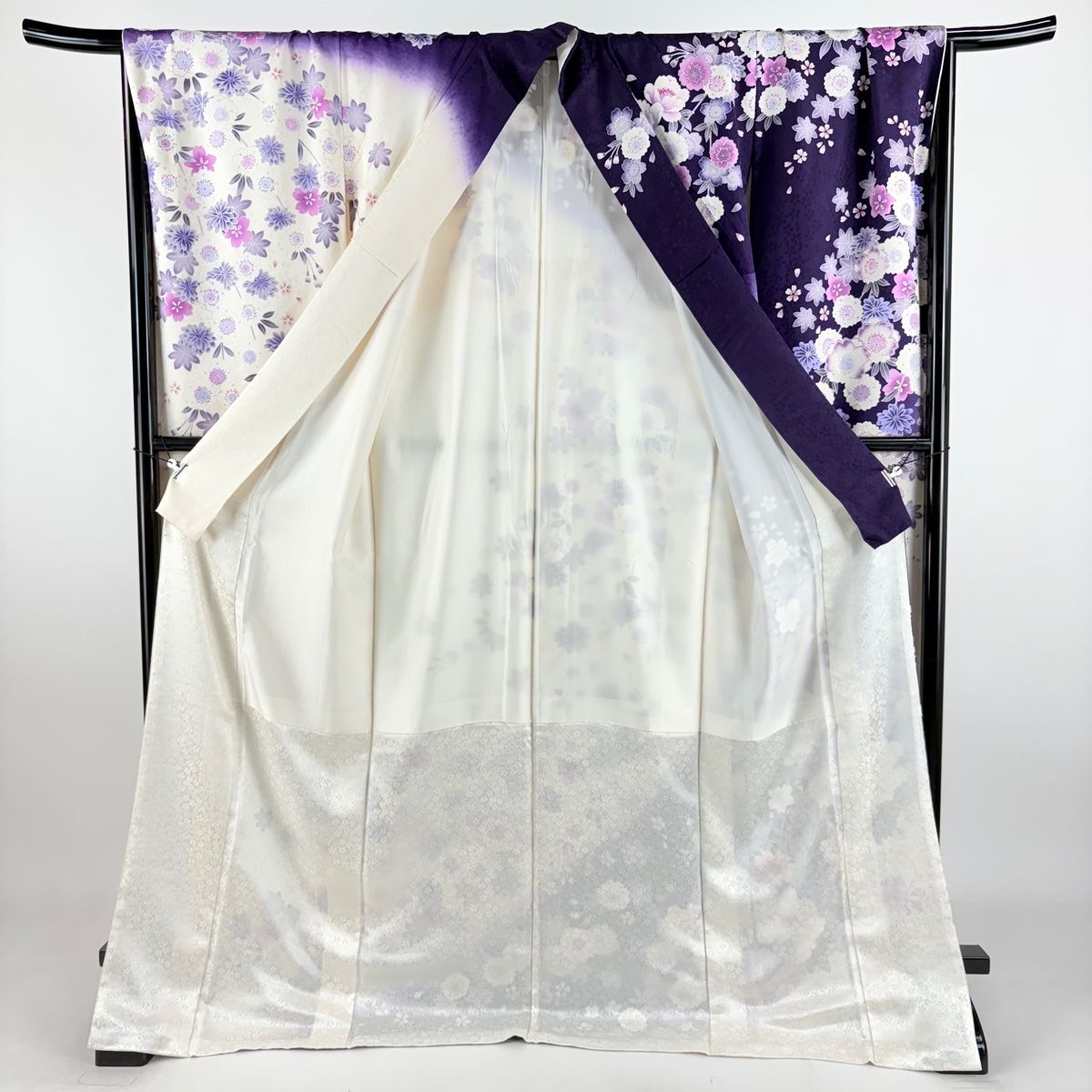 振袖 身丈175cm 裄丈71cm L 袷 牡丹 草花 箔 銀彩 紫 正絹の検索結果