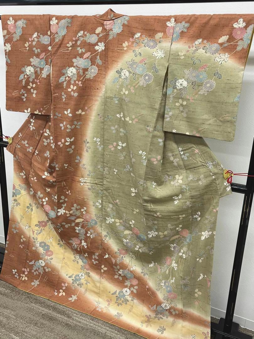 しょうざん 生紬 絵羽小紋 金彩 菊 萩 暈し染 胴裏 正絹の検索結果