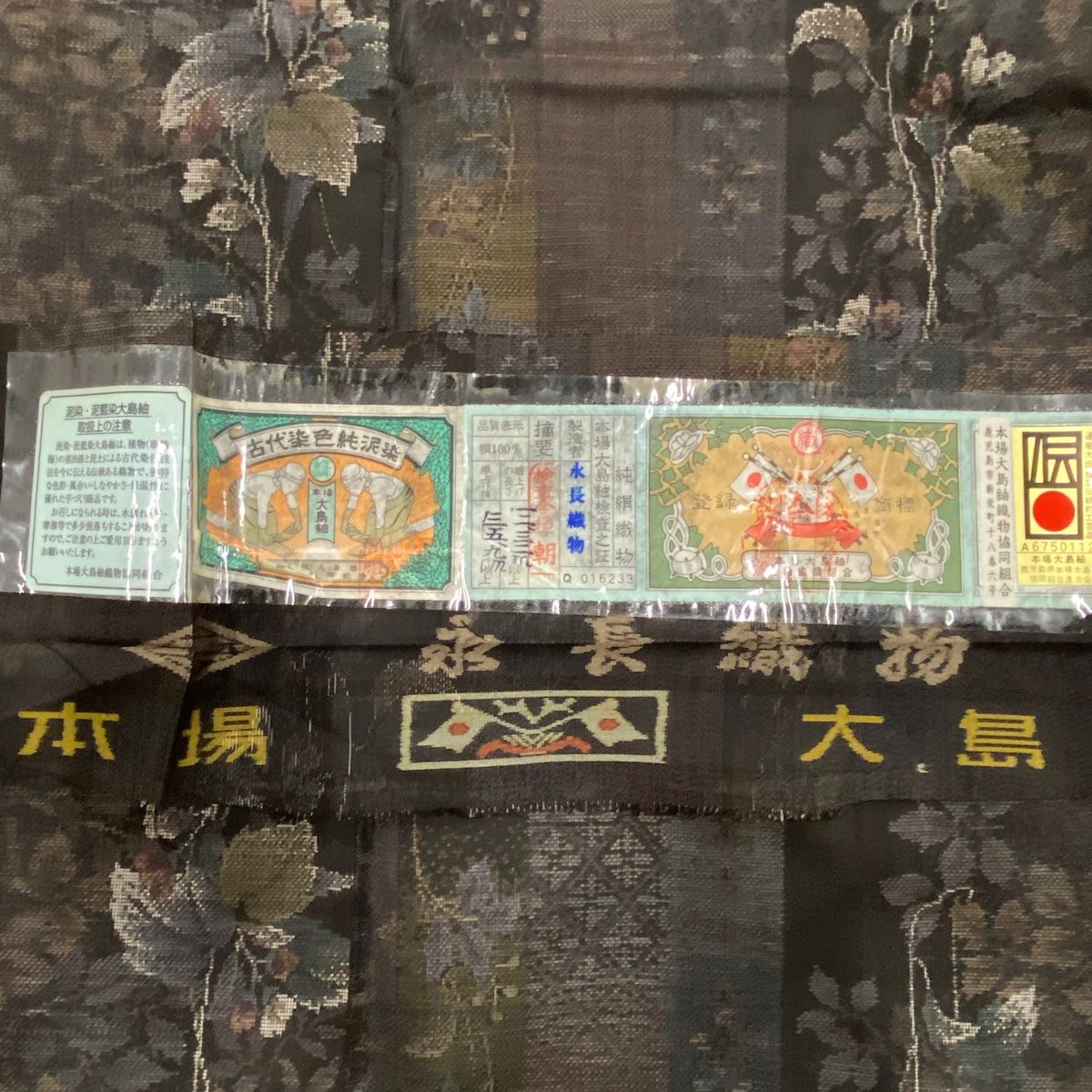 大島紬 身丈158cm 裄丈60.5cm S 袷 やまと 草花 縞 純泥染 焦茶色 正絹の検索結果