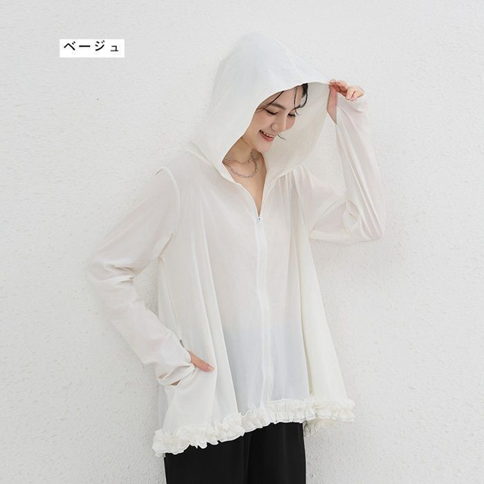 水陸両用フリルラッシュガード UVカット日焼け防止 水着 ラッシュガード レディース フード付き 長袖 トップス 速乾 ママ 水着 体型カバー フリル フ 体型カバー UVパーカー 接触冷感 2lE7606 WWW_GLOBALQUALITYIMPORTS_COM