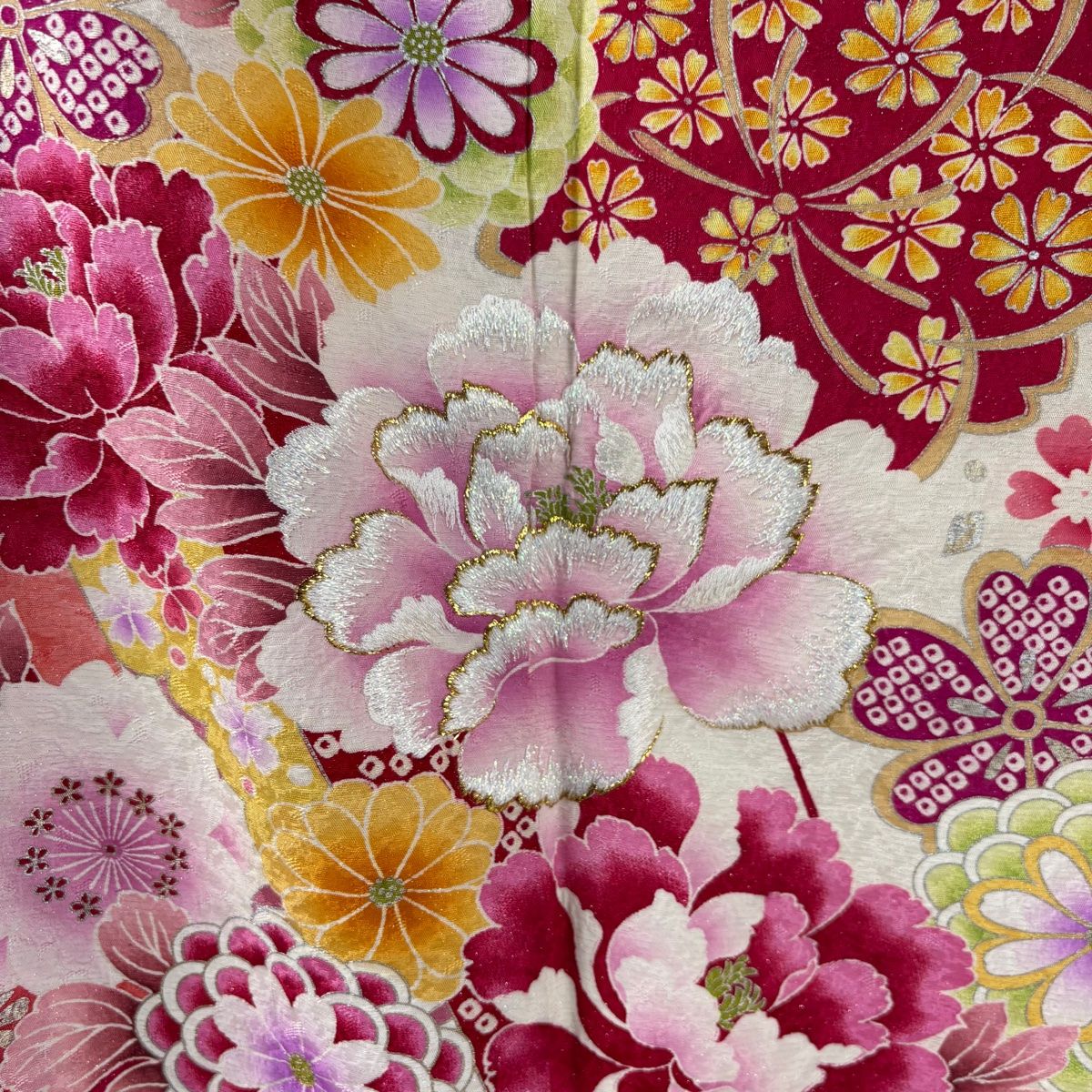 振袖 身丈170.5cm 裄丈69.5cm L 袷 牡丹 桜 刺繍 銀通し クリーム 正絹の検索結果
