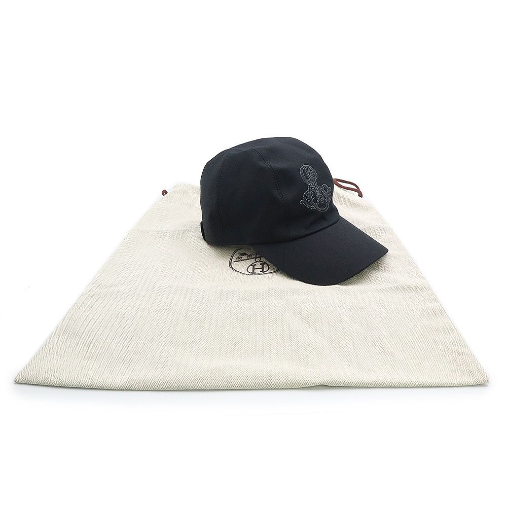 エルメス デイヴィス エミール キャスケット キャップ 帽子 58CM コットン96% エラスタン4 ノワール ブラック シルバー金具 HERMES WWW_GLOBALQUALITYIMPORTS_COM