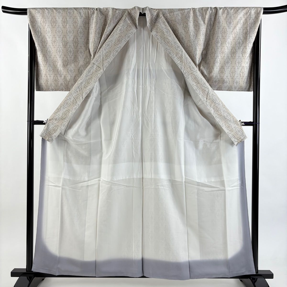 大島紬 身丈167.5cm 裄丈68.5cm L 袷 証紙 幾何学模様 クリーム 正絹 名品