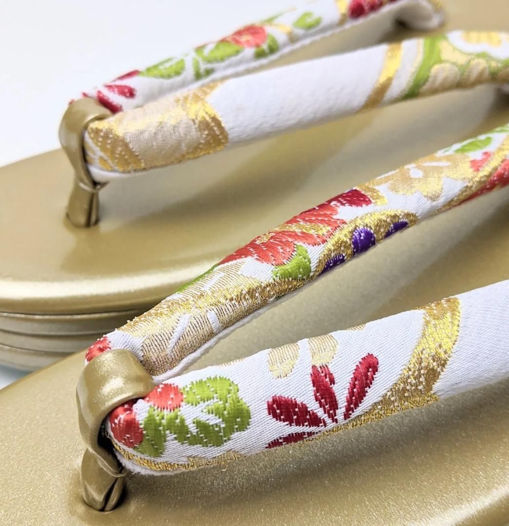 和装 草履 バッグ セット 帯地 梅 白 金 ゴールド フリーサイズ w5-10